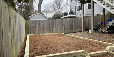 This wet and shady yard was no place for kids to play. By building a raised play area and filling it with playground woodchips, this space will now drain quickly and provide a safe and soft location for all of the neighborhood kids to gather.